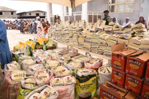 In their thousands, the people gathered to receive gifts of cash and food items, in continuation of the legacy of generosity set by renowned politician, hotelier and former governorship candidate of tbe People’s Democratic Party (PDP) in Ogun State late in the 2019 general elections, Senator Buruji Kashamu.