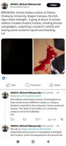 The incident, which reportedly occurred around midnight, saw a gang of about 12 armed men invade multiple hostels, dispossessing students of phones, laptops, and other valuables.